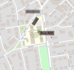 Lageplan LPD@FTS Schwenningen Bushaltestelle, Parkplatz und Raum (B009) Based on OSM.org Maps