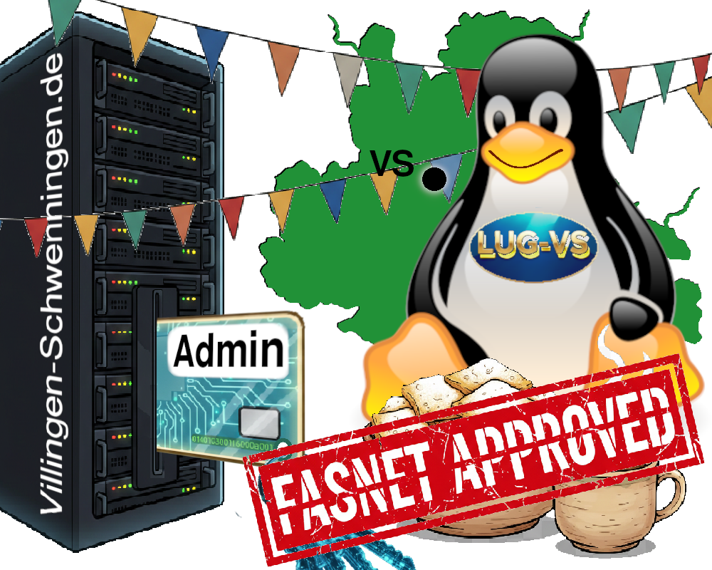| 21:25, 4. Feb. 2026 | LUG logo glossy groesser8 marker+shadow4dark test.png (Datei) | 648 KB | Chrisb | moderneres LUG-VS-Logo mit vergrößertem Pinguin in aktuellem Look. Das Logo berücksichtigt, den Landkarte-Stil und fügt zur besseren Erkennung einen "Ortsmarker" "mit der Beschriftung "VS" hinzu, damit sollte sofort erkennbar sein, dass es sich um einen Landkartenausschnitt handelt. Dieses Logo dient als Grundlage für Anpassung lokaler Ereignisse/Festivitäten im Großraum VS, Rottweil, Tuttlingen und Heuberg. | 1 | |