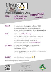 | 18:56, 7. Okt. 2021 | Flyer vLPD 2021.2 LUG-VS.jpg (Datei) | 80 KB | Erste Version des neuen Flyers | 1 | |